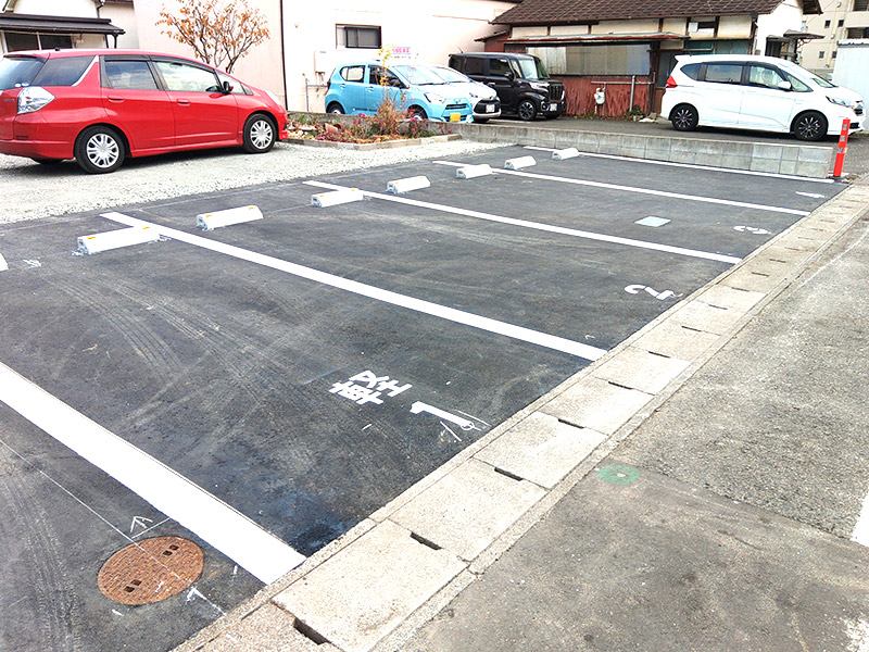 駐車場:アスファルト仕上げ 4台分 車止め 白線 ナンバリング有 フリースペース:砂利仕上げ 2台分 |